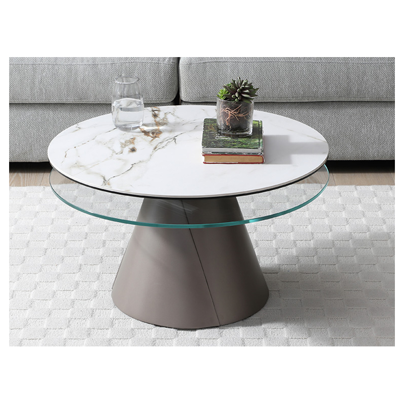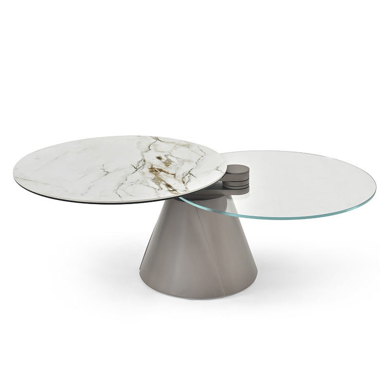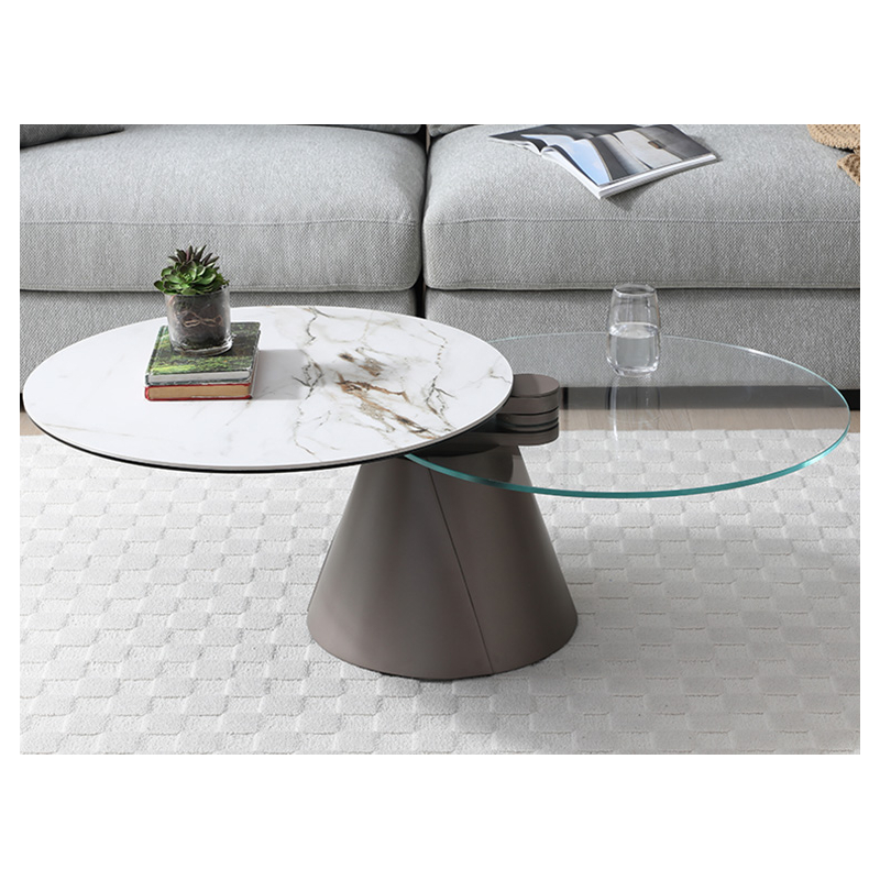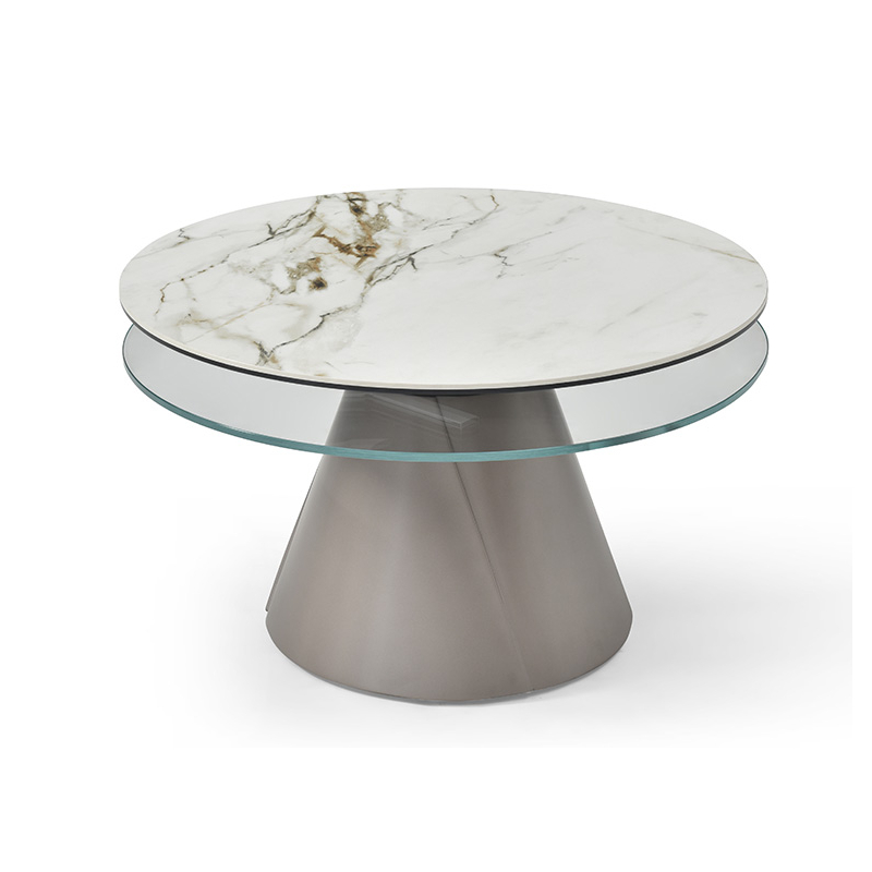 2 plateaux pivotants synchronisés en céramique Golden strone épaisseur 3 mm sur verre trempé épaisseur 8 mm et verre extra clair épaisseur 10 mm
