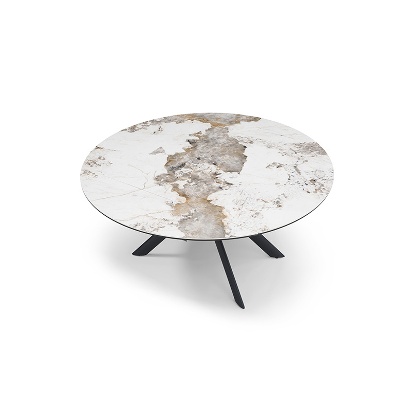 Plateau et 2 allonges de 30 cm en céramique Cold Jade, Pandora, Travertin épaisseur 6 mm collé sur verre trempé 8 mm